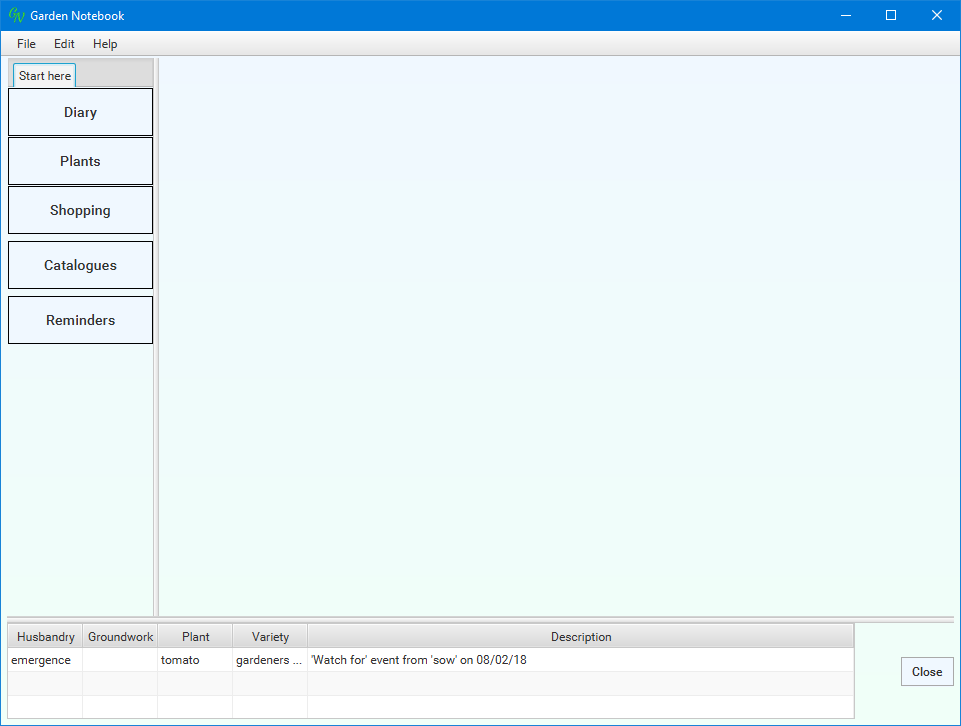 The standard installation includes some data. There are some administrative items (which I'll come back to) and some initial plant data - after all, gardening is all about plants!